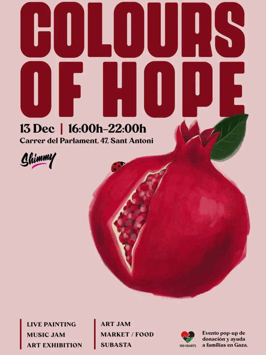 A pop-up event to raise funds for direct humanitarian aid to some families in Palestine we're in touch with. Many thanks to Shimmy for their support and to the artists who so far have offered their work for the event. We will have a market, music, art, auctions... and lots of smiles.