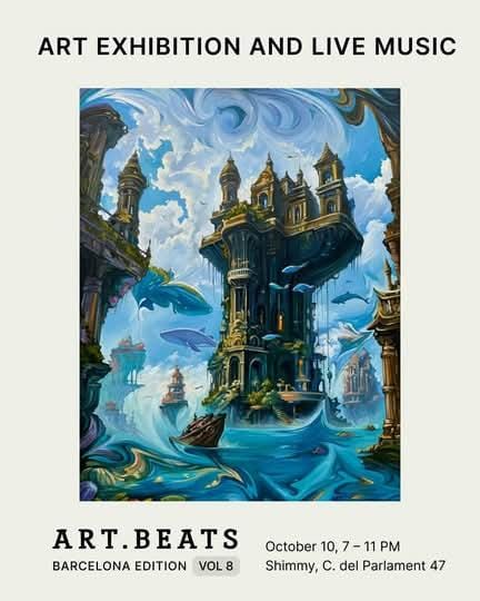 The topic of this exhibition is "Other Worlds".@artbeats_bcnbring together international painters based in Barcelona. Each artwork is a portal into cosmos, oceans, dreamscapes, and forgotten instincts. A chance to explore, connect, and immerse yourself in creativity.